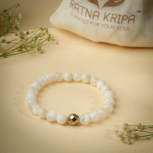 Selenite & Black Tourmaline with Evil Eye Hanger for Positive Energy and Spiritual Shielding