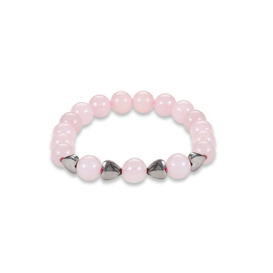 Rose Quartz with Hematite Heart Elastic Bracelet