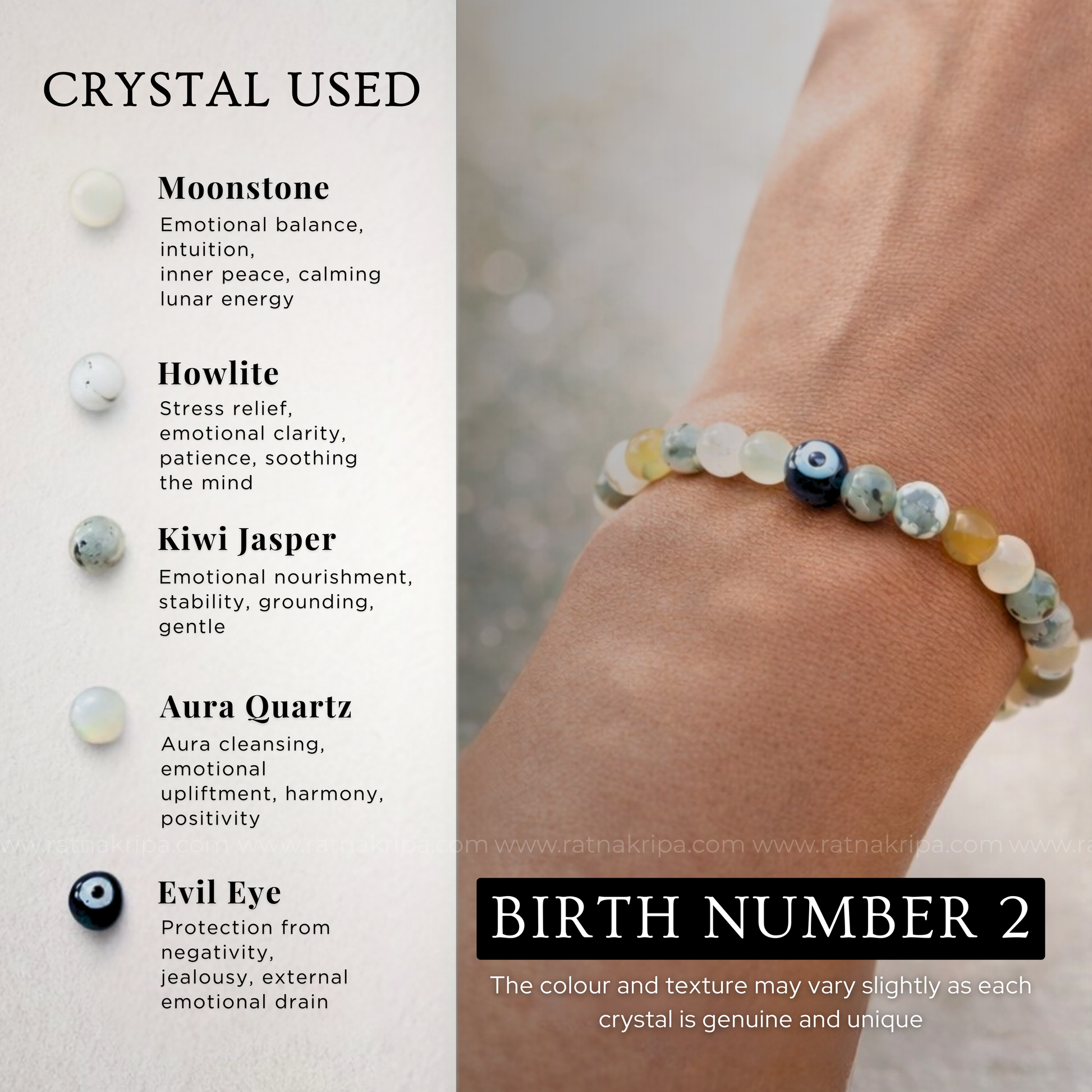 The Birth Number 2 Bracelet is specially created for individuals born on the 2nd, 11th, 20th, or 29th of any month, whose Birth (Mulank number) is 2 according to Numerology. Ruled by the Moon, this bracelet represents peace, intuition, and emotional balance, which align with the natural qualities of those under this number.